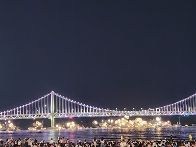 광안대교에도 반짝이는 불빛이 들어와서 드론쇼와 잘 어울리며 멋진 볼거리를 제공합니다.