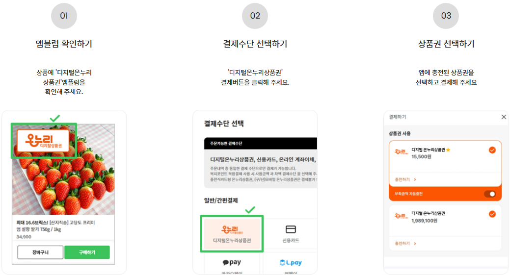 - 사용가능 가맹점: '전통시장 통통' 사이트, 온누리상품권 앱에서 확인가능.