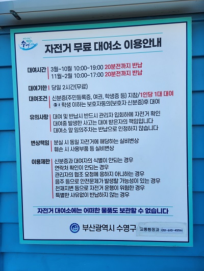 부산의 관광명소인 광안리에 무료대여소가 있다니..안가볼수가 없네요.