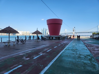 광안리 해변쪽으로는 사람들이 너무많아서 자전거로는 다니기 힘들었습니다.