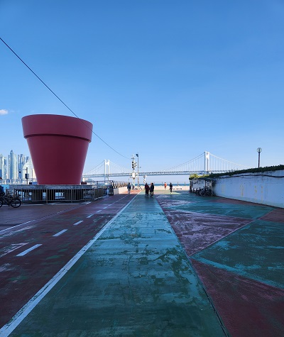 자전거 타면서 광안대교를 감상하니 더 좋습니다.