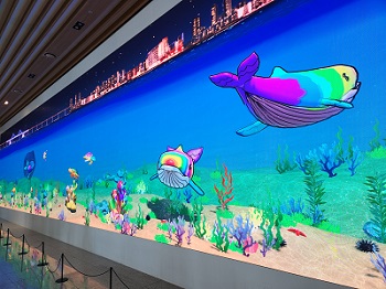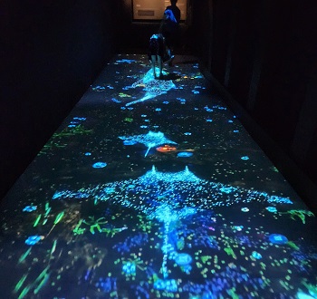 입구를 들어서면 거대한 바다속 해양생물이 나오는 스크린이 있어서 호기심을 자극합니다.