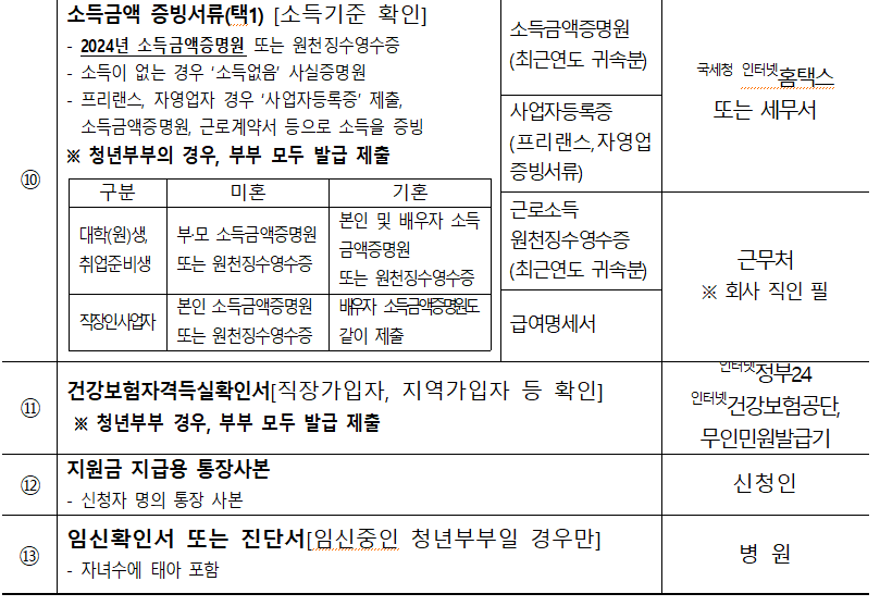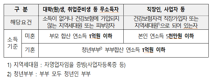 - 소득기준: 2025.7.1 기준 아래의 소득이하(세전기준)