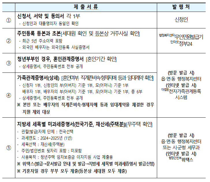- 신청서류: 2025.7.1 이후 발급된 서류여야함(직인.날인 필)